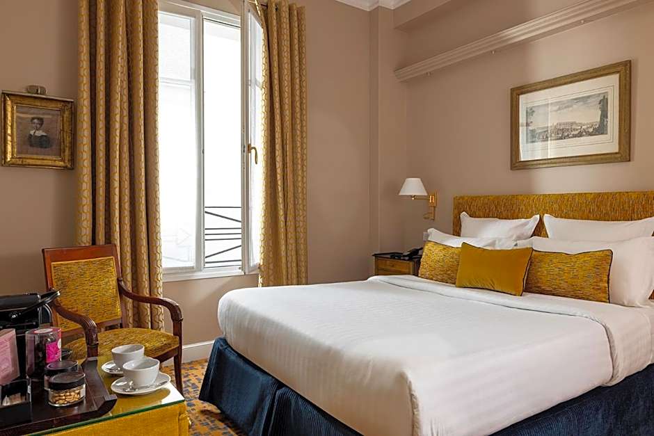 This spacious room has a classic décor and a window opening onto the street or the courtyard. It includes a mini-bar and free Wi-Fi.